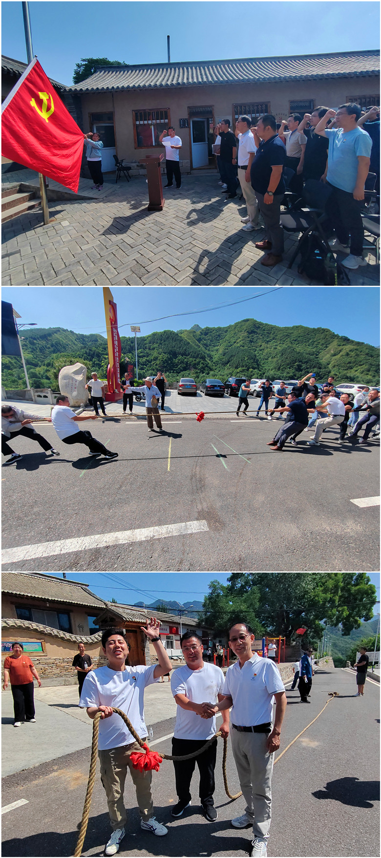 結(jié)構(gòu)所黨支部與顧家臺(tái)黨支部開展聯(lián)合黨日活動(dòng)。顧家臺(tái)村支部書記顧錦成同志帶領(lǐng)全體黨員在黨旗下莊嚴(yán)宣誓,重溫入黨誓詞。隨后,兩個(gè)支部的黨員開展拔河聯(lián)誼活動(dòng)。