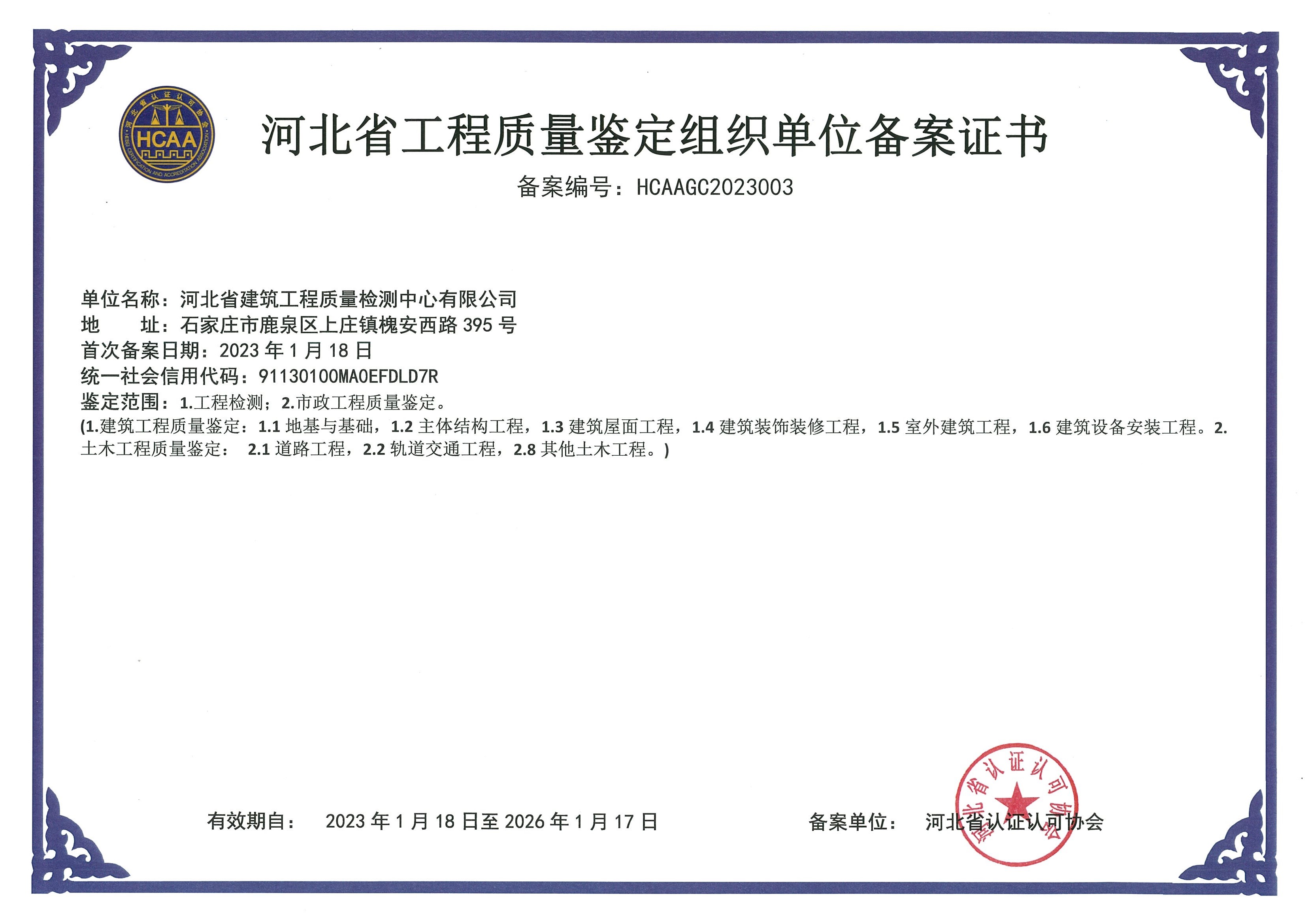 河北省建筑工程質(zhì)量檢測中心認(rèn)證證書3
